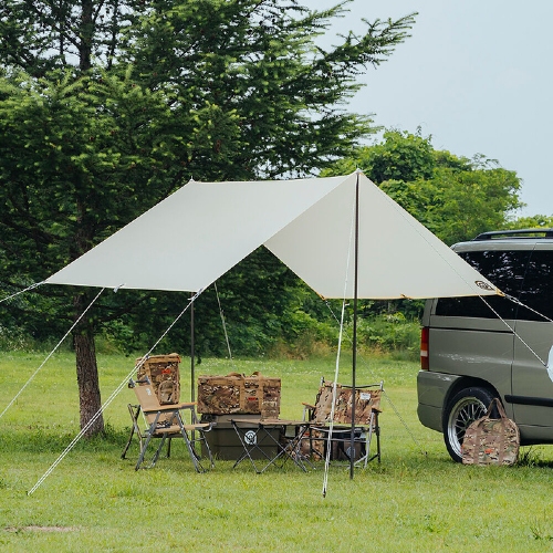 타프 - 전실이나 거실이 없는 텐트에 활용. 혹은 하계에 텐트 위에 열기를 낮추기 위한 용도로 활용.