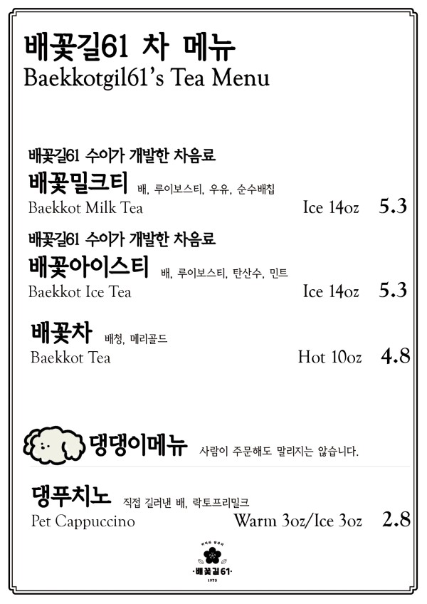 메뉴는 배를 재료로 한 음료가 있어 다른 곳과 차별점이 있습니다.